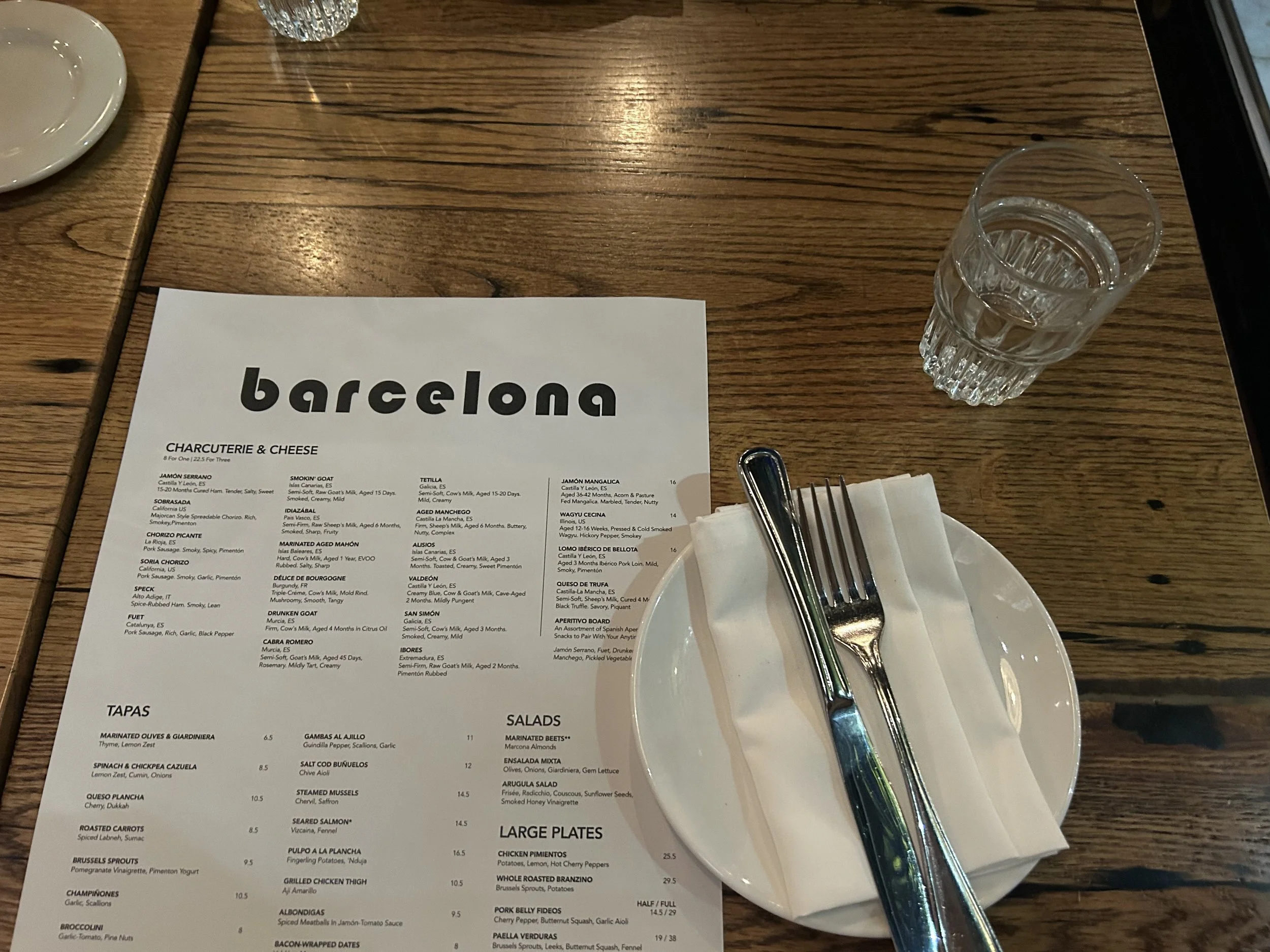 Barcelona Wine Bar is a Spanish Style tapas and wine bar with multiple locations across the Boston area, as well as within some other states. It leans more on the elevated casual side in restaurant culture. I witnessed older tech guys in khakis, polos, and puffer vests, and young college girls in fur coats and kitten heels, all enjoying themselves over glasses of Sangria, under moody lighting. The menu is incredible, full of rich and dense flavors with each bite, making their small plates all the more shareable, because it can be easy to get overwhelmed with too much of the same strong flavors. It’s definitely made in mind for someone with a more refined tastebud, as many of the flavors found on their dished are often contrasting, such as their delicious bacon wrapped dates filled with a blue cheese spread. Great for a nice date night, or for a smaller bite before a late night event. I would definitely recommend trying! At the Cambridge location they were playing artists Charli xcx and Caroline Polachek, so if you listen to them, then you know it’s a vibe.